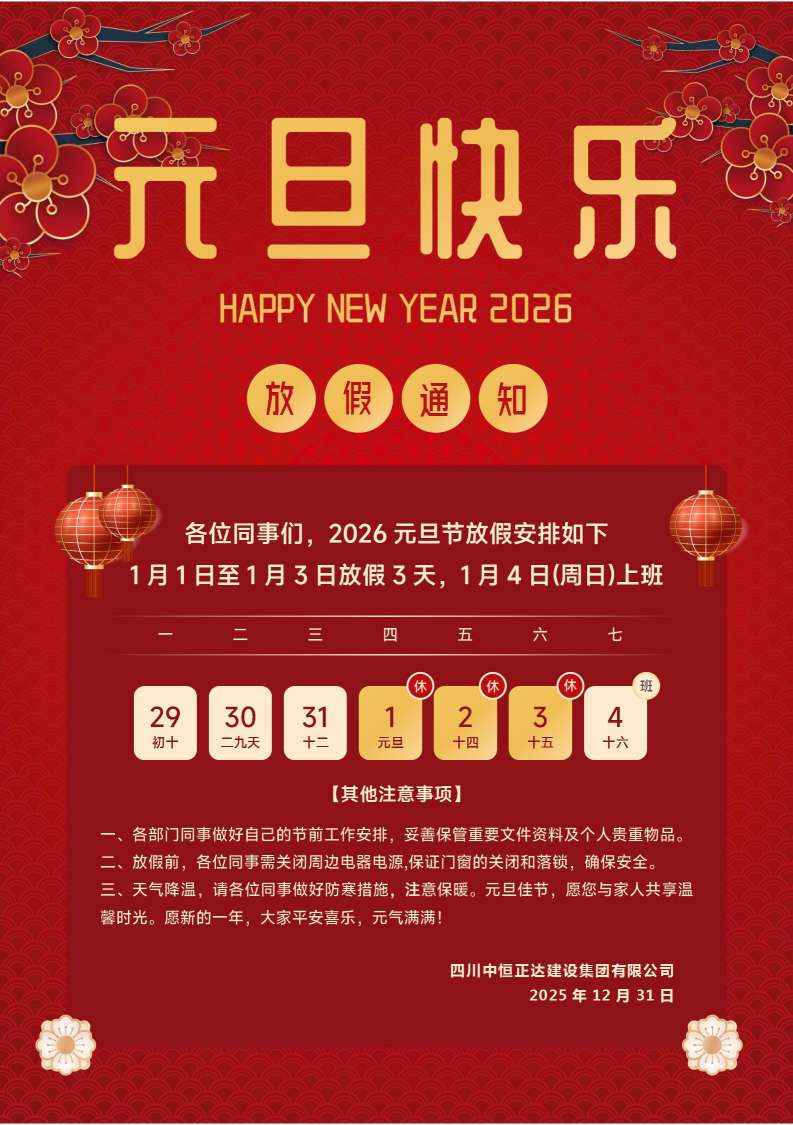 2026年元旦节放假通知点击详细>>2025-12-31 -